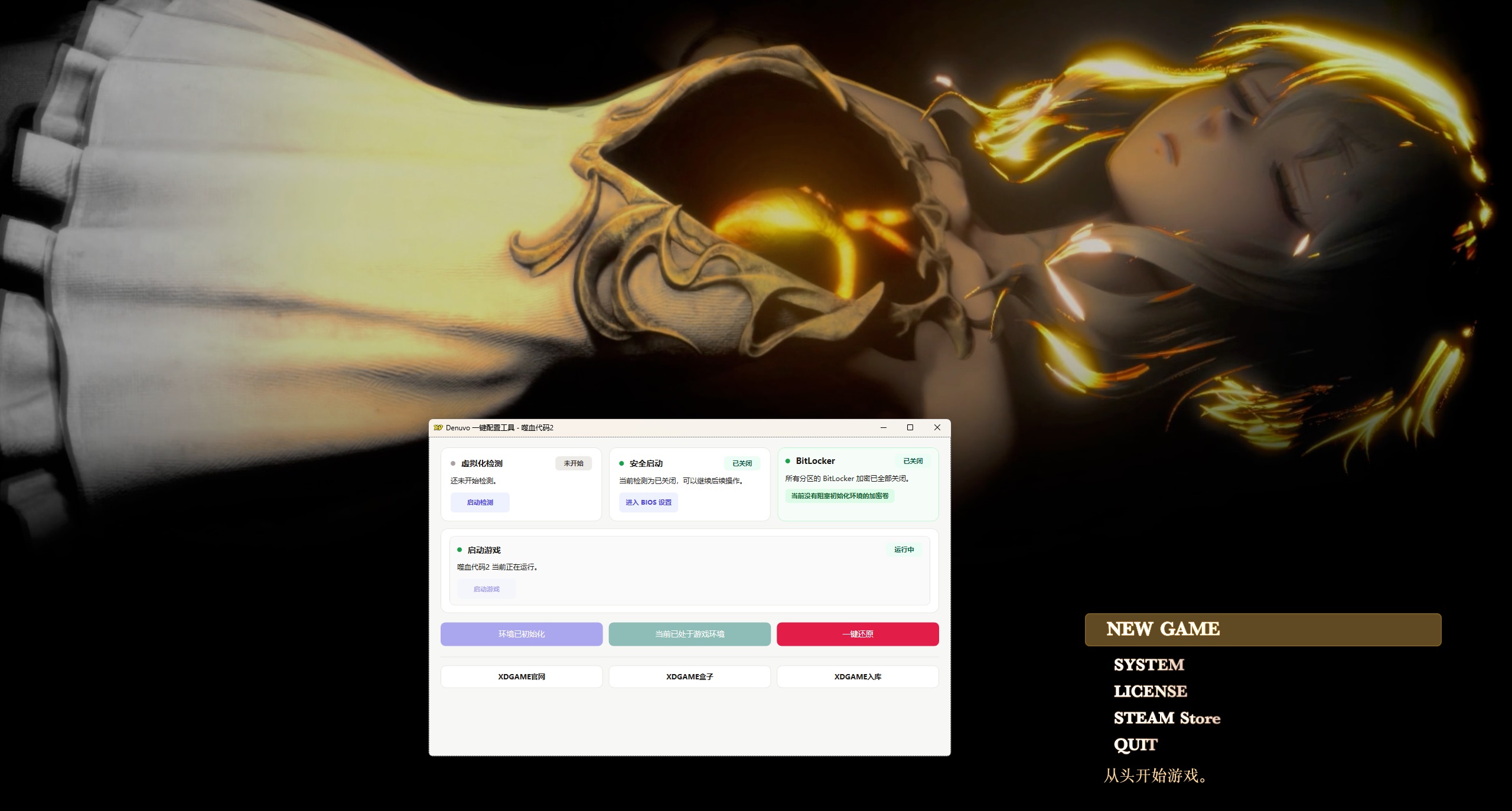 重启电脑后继续打开Denuvo.exe点击 启动游戏 → 开始玩耍   ↓ 站长亲测截图 ↓